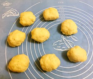 面条发酵好,均匀的分成等量的小球肉圆,用保鲜膜盖上醒制20分钟