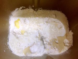 按照正常做面包的程序将原材料放入面包桶内,启动和面程序