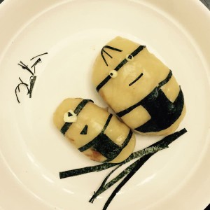 用芝士做小黄人的眼白,也可以用蛋白。工具可以用饮料的吸管。
