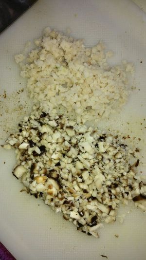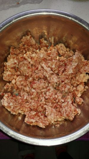 把香菇和藕剁碎,加入肉馅里继续搅拌!