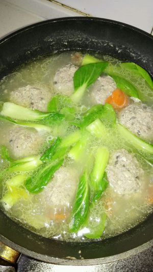锅中烧水【最好用砂锅】,放入几片葱姜,水开后把肉馅用两个手来回倒腾几次,依次放入锅中,水开后关小火,炖一小时左右。