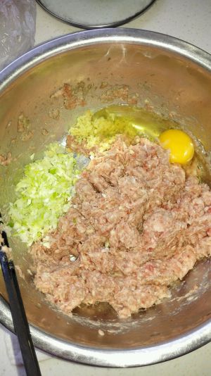 把肉馅中加入葱姜,鸡蛋,料酒,盐,搅拌均匀