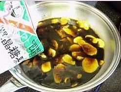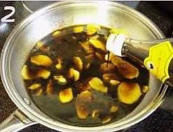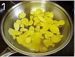 0.3份的姜去皮洗净切成厚片,放入锅内加入少量盐煸干,出香味时倒入适量的油小火煸成金黄色;