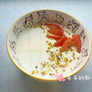 可以加干桂花、水果装饰。凝固不到果冻那样,大约是老酸奶那种厚度。现做现吃,姜味清淡牛奶醇香。