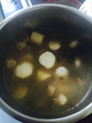 加盐加马蹄和甘蔗倒入电高压锅中,按猪蹄键。