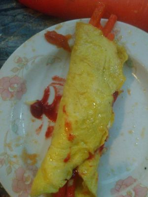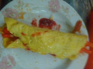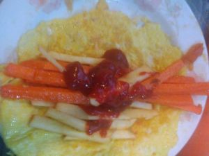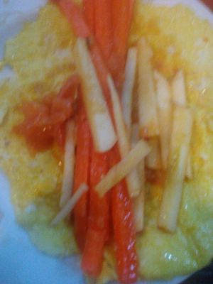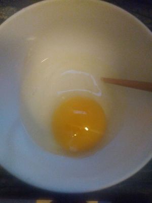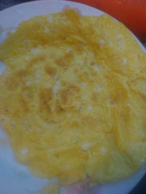把搅好的蛋放进锅中煎出金黄色后出锅