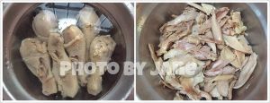 将泡好的鸡腿肉撕出来