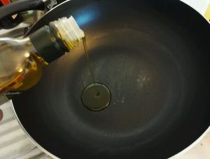 锅中倒入橄榄油加热至可以看到轻微冒烟。