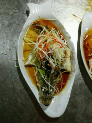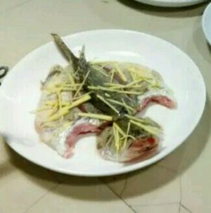 可切大片姜片或粗姜丝放在鱼上,蒸上九分钟左右,蒸好后舍弃铺于鱼上的姜片或姜丝,倒掉盘中多余的水可以更好的去腥。
