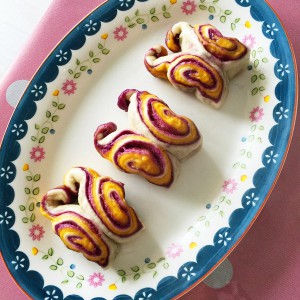 蝴蝶的忘记拍照了、先三种面杆成片、叠一起卷起来、切好后用筷子夹一下