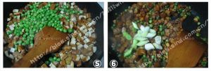 下青豆粒,锅内材料翻炒均匀,依次添加糖、生抽、老抽、适量的盐。锅内材料炒匀入味后,加入剩下的蒜段,翻炒出香后起锅。