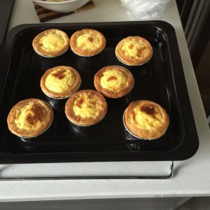 打均匀,用筛子过滤一下,倒入蛋挞皮八分满