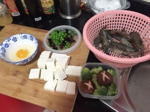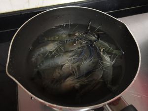 虾清水里煮开 放入姜 大蒜 盐 黄酒去腥