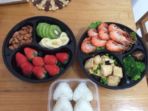 接下来就装进便当盒 米饭用三角模具出型 如右图所示