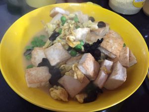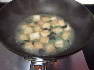 炒好鸡蛋 加入豆腐里一起煮 汤里会有鸡蛋的香味 那个鲜味就出来啦