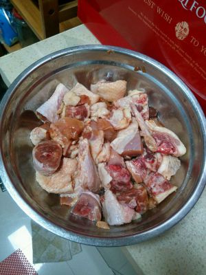 鸡肉洗净,切快,用料酒、盐、糖、酱油进行腌制。