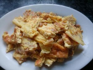 约40g的量加三个蛋,刚好,不会太多也不会少。这道菜两种食材都是主角!