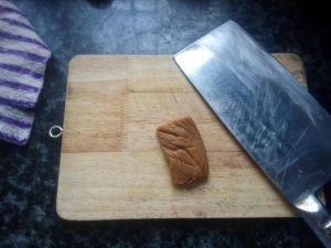我不喜欢整张蛋夹来夹去,煎好息火就用锅铲切成小块,吃起来也方便!正宗菜脯蛋是不加葱与其他食材的。
