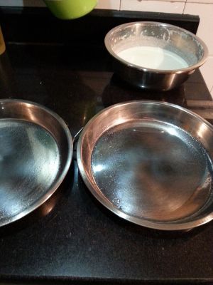 蒸面皮用的锣锣抹一层薄油【我的锣锣内径是22cm的】