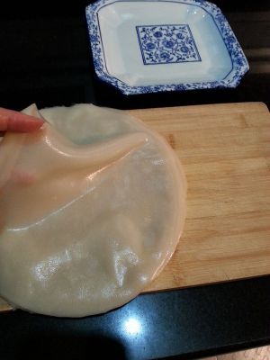 用硅胶刮刀轻轻的揭开第一张锣锣里的面皮边缘,然后用手取出