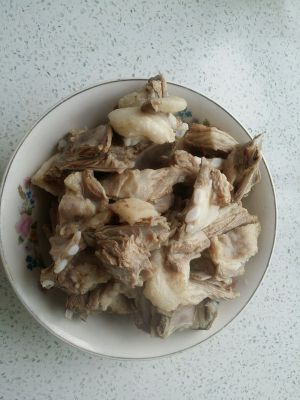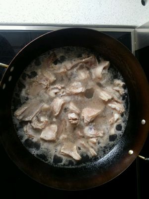 羊肉焯水,我在水里加了点白酒去腥(想加料酒的,发现料酒用完了,不过效果都一样)