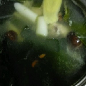 泡发海带,等到汤熬制五十分钟左右下入海带