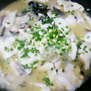 下鱼片,注意一定要一片一片的下,待全部下完之后,煮1-2分钟