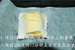 烤箱200度预热,在香蕉派上刷上蛋黄液,入烤箱200度烤12分钟左右至金黄色出炉.
