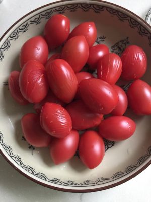 取小番茄洗净,在烧开的水中烫