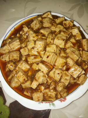 然后放入一小碗水,煮开后放入豆腐。小火烧制,快熟时勾入水淀粉,最后大火收汁。我不喜欢葱,就没有放葱,可能看起不太好看,但是味道很棒的哦