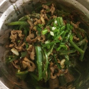 倒入肉丝一起翻炒,放盐,和酱油。起锅。(⌯¤̴̶̷̀ω¤̴̶̷́)✧