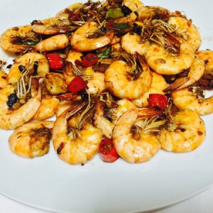 入虾,翻炒至虾变色后烹入料酒,入白砂糖、盐,胡椒粉,少量淡口酱油大火翻炒。