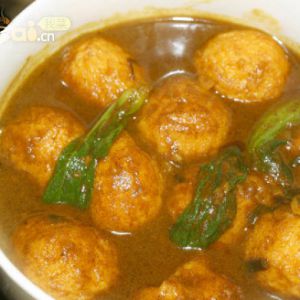 加入所有调料和两杯水煮沸,之后再放入炸好的鱼丸和青菜,慢火煮入味
