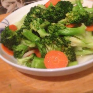 西兰花洗净,掰小块,胡萝卜去皮,切片;