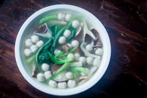 先放进丸子进去,反正丸子耐煮,我是放进丸子进去又跑一边去炒了个菜。大概煮2分钟让丸子浮起来就OK啦。