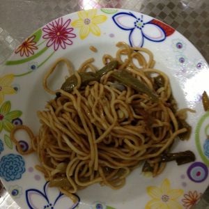 放入大料、扁豆、生抽、老抽、白糖、盐翻炒,半熟时倒入热水,热水量要刚刚没过扁豆,然后把面均匀铺在上面,小火焖10分钟。