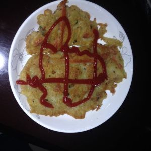 把土豆 火腿肠 猪肉(牛肉都可以)切条放入碗里,葱花切颗,放入碗里。