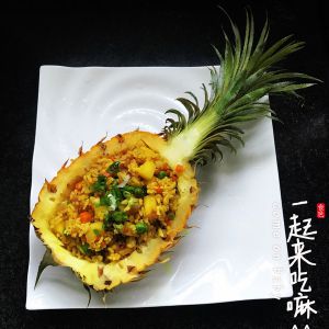 至于凹造型的话,切菠萝对半切,把肉挖出来,菠萝壳备用,炒好的饭直接装进去就好。