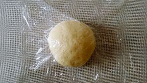 将水油面团的所有材料混合在一起,揉成光滑的面团。盖上保鲜膜室温发酵至2倍大。发酵好的面团用手压出空气,重新揉成圆形,盖好松弛15分钟。