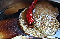 取出冷冻的老卤解冻 并将尖椒、葱、姜、八角放入卤中