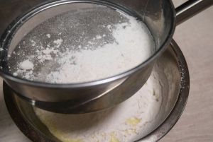 加入水搅拌均匀。筛入低粉,用手抽Z字形拌均匀