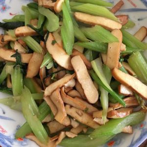 热油,葱花炝锅,炒芹菜,断生后下香干,盐,生抽炒熟后放香油