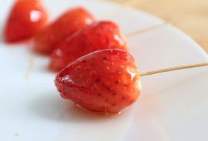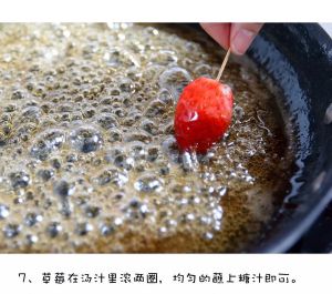 将草莓在冰糖汤里滚两圈,