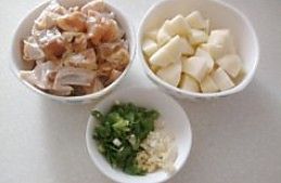 鸡块洗净控干水分,土豆切滚刀块,葱姜蒜切末。