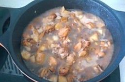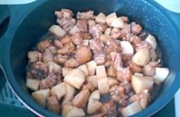 填汤没过原料,大火烧开后转小火慢慢炖至原料软烂,汤汁收浓入味,撒上葱花即可