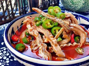 坐锅烧热给菜籽油烧辣下姜片,花椒粒爆香