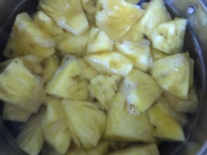 用盐和水调成淡盐水,放入菠萝块,泡30分钟
