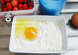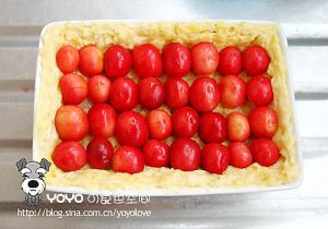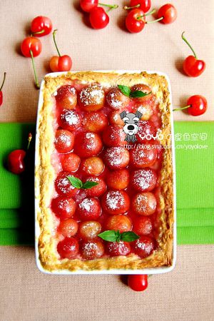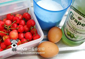 派皮原料:(面粉180克、鸡蛋2只、橄榄油20克、糖20克、盐2克);派馅原料:(牛奶50克、樱桃300克、糖粉10克);
