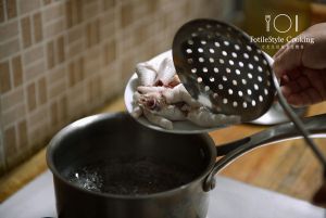 接着放入锅中用中火煮制30分钟,再捞出沥干水分。