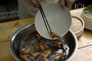 将炸好的鸡爪放入冷水中浸泡10分钟